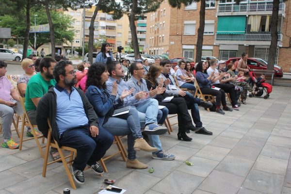 La plaça Rafael Casanova ha acollit la presentació de la candidatura i les propostes programàtiques d’Abrera En Comú. Una actuació musical reivindicativa de Rebecca Rubio, cantant valenciana que va interpretar un cançoner amb missatge feminista, ha obert l’acte.
