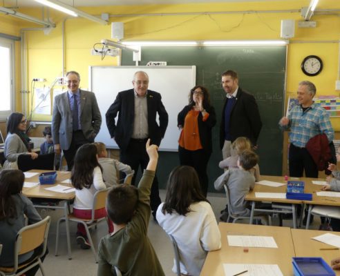 Posteriorment, Josep Bargalló ha visitat l’Escola Vinya del Sastret de Sant Esteve, juntament amb l’alcalde Enric Carbonell, regidors i l’equip directiu. El centre té 217 alumnes entre P3 i 6è de primària, i incorpora diferents projectes com Generació Plurilingüe, Sharing to learn, el treball per racons o el programa Erasmus.