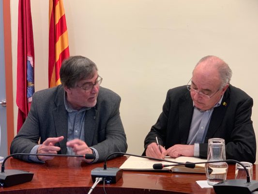 A l’Ajuntament, on ha signat el llibre d’honor, el conseller ha refermat la voluntat d’ampliació de l’Institut Montserrat Colomer a l’espera de disposar de pressupost per poder executar el projecte, aprovat des de l’any 2010. Carbonell ha insistit en la necessitat i urgència que l’ampliació del centre sigui una realitat aviat i espera concreció en el compromís del Departament.