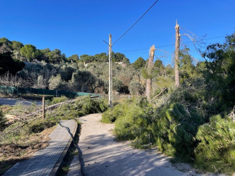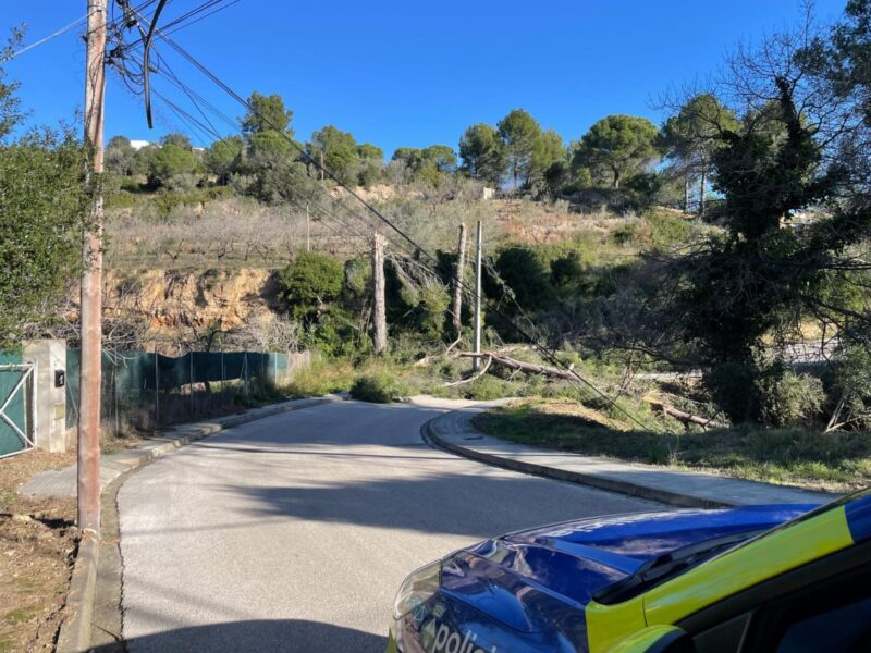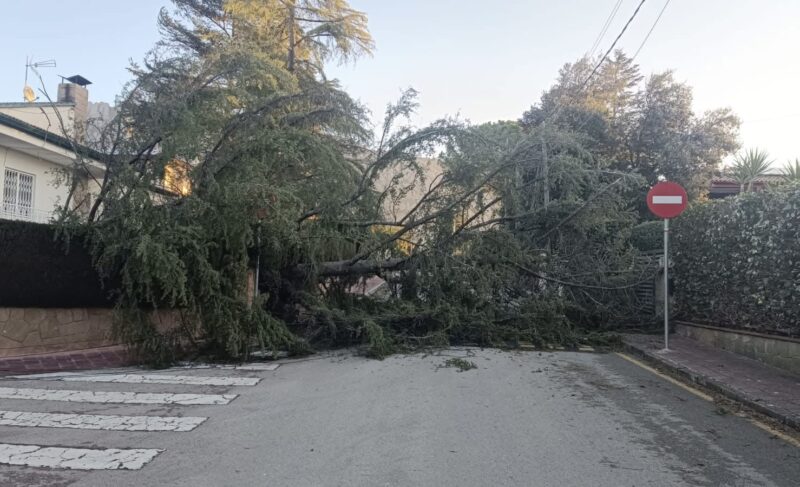 Queden tancats els parcs i jardins urbans, el Complex Esportiu Municipal i el Centre de dia i activitats externes al Centre Gerontològic Can Serra, a més de la suspensió de l’activitat dels Serveis Socials bàsics. Les incidències més destacades són les caigudes d’arbres, principalment en propietats privades, amb afectacions a l’interior d’altres finques i a la via pública. A Ca n’Amat, al carrer Associació, la caiguda d’un pi ha obligat a interrompre el pas de vehicles fins a la seva retirada. També ha caigut un altre pi en una propietat privada del carrer Pedraforca, amb afectació a una finca veïna. A més, s’han registrat trencaments de branques en diversos punts, al carrer del Català, al Pou del Merli, des d’una parcel·la particular cap a la via pública. La seva retirada requereix la intervenció dels Bombers.