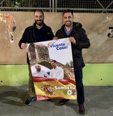 El candidat amb el número 2, Romà Ribot, del Partit Popular de Martorell, amb l’enganxada de cartells i el lema ‘Somos tu voz’.