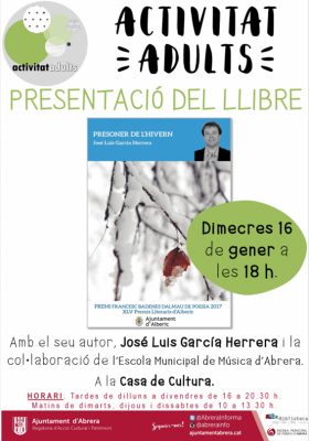 El poeta abrerenc José Luis García Herrera presenta, aquest dimecres, el seu darrer treball poemari titulat ‘Presoner de l’hivern‘ que fa una íntima reflexió sobre el pas de la vida i els comiats.