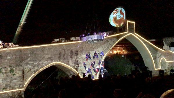La humanitat és un diable que maltracta el territori, embruta rius o genera misèria, discriminació, abús, desesperació, odi, xenofòbia, ira, enveja… paraules representades per caixes de cartró que han corregut pel Pont. Però entre aquestes, alguns missatges d’esperança com l’amor i la positivitat.