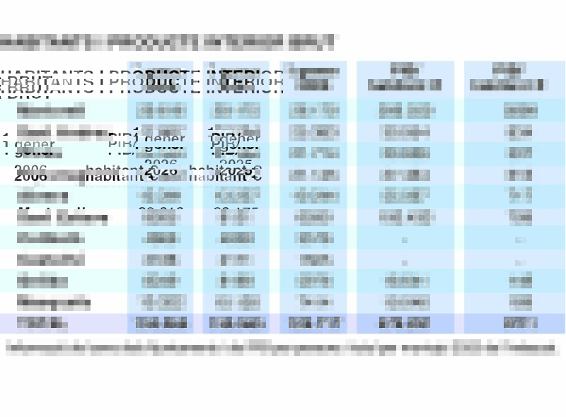 Publiquem la informació del cens dels ajuntaments i del PIB per persona i total per municipi l’any 2023