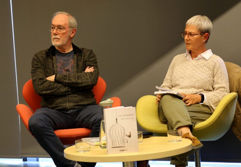 El martorellenc Miquel Sariols ha presentat aquest dimarts 22 d’abril la seva primera novel·la a la Biblioteca Francesc Pujols. Es tracta de ‘La cadernera‘, una obra que fa un homenatge a les figures femenines durant la guerra a través de la Carmen, la protagonista de la història, qui va perdre el seu fill i espera el seu marit, qui lluita al front bèl·lic.