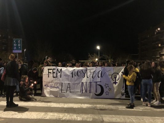 Centenars de participants fan una marxa nocturna i aquest divendres s’organitza un dinar de carmanyola i una sortida a Barcelona per participar en la vaga feminista